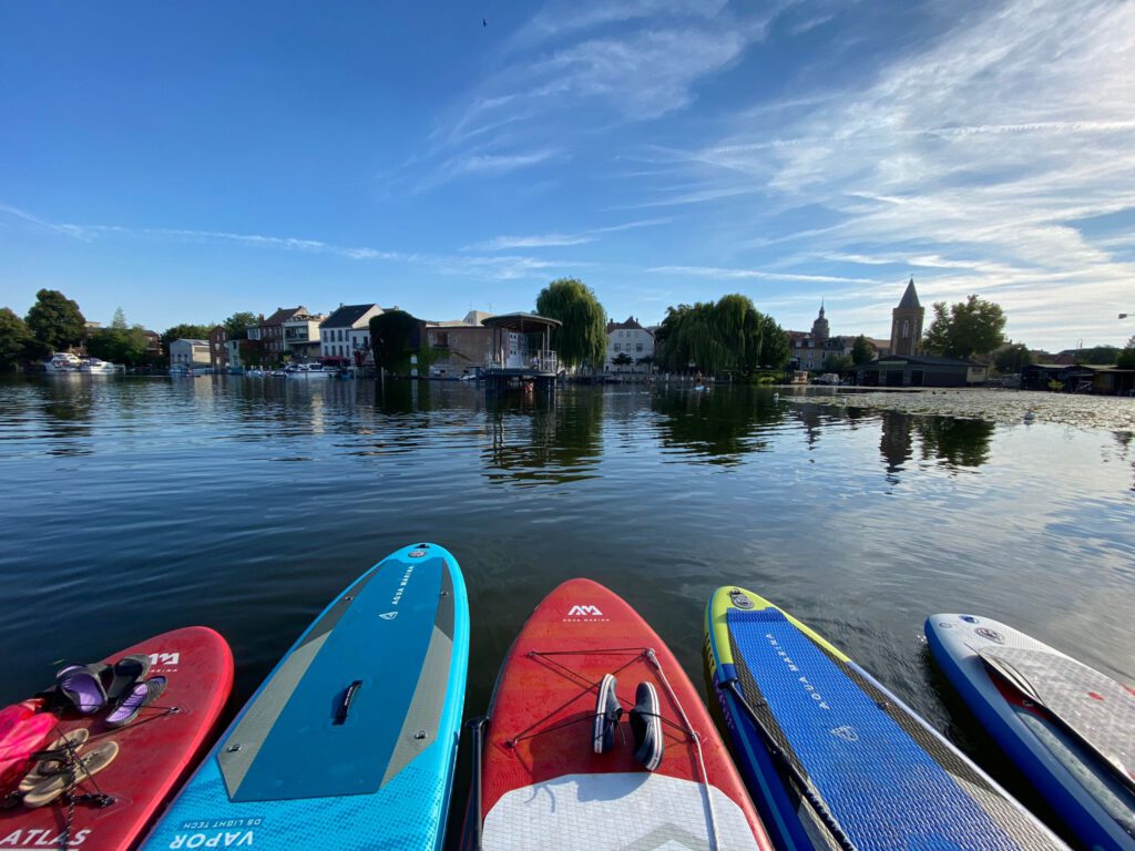 Auch der praktische Teil kommt nicht zu kurz. In und um die Stadt gibt es mehrere gut erreichbare Einstiegsstellen, an denen man bequem ins Wasser kommt. Häufig liegen diese in der Nähe von Uferwegen, kleinen Stegen oder Badestellen. Das Auto lässt sich dort meist in fußläufiger Entfernung parken – besonders an bekannten Wasserzugängen oder größeren Seen wie dem Beetzsee. Ein kurzer Spaziergang, Board aufpumpen, lospaddeln – einfacher geht’s kaum.